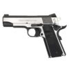 Single action. Forged steel receiver, forged carbon steel slide, forged stainless steel barrel and forged steel slide stop. Features include Novak low mount carry sights with dots, front and rear slide serrations, enhanced 3-hole trigger. Extended single side tactical safety lock. Upswept beavertail grip safety. Half smooth, half checkered rosewood grips embossed with the Colt logo. Lowered and flared ejection port; full length guide rod. National Match barrel. Two-tone finish.