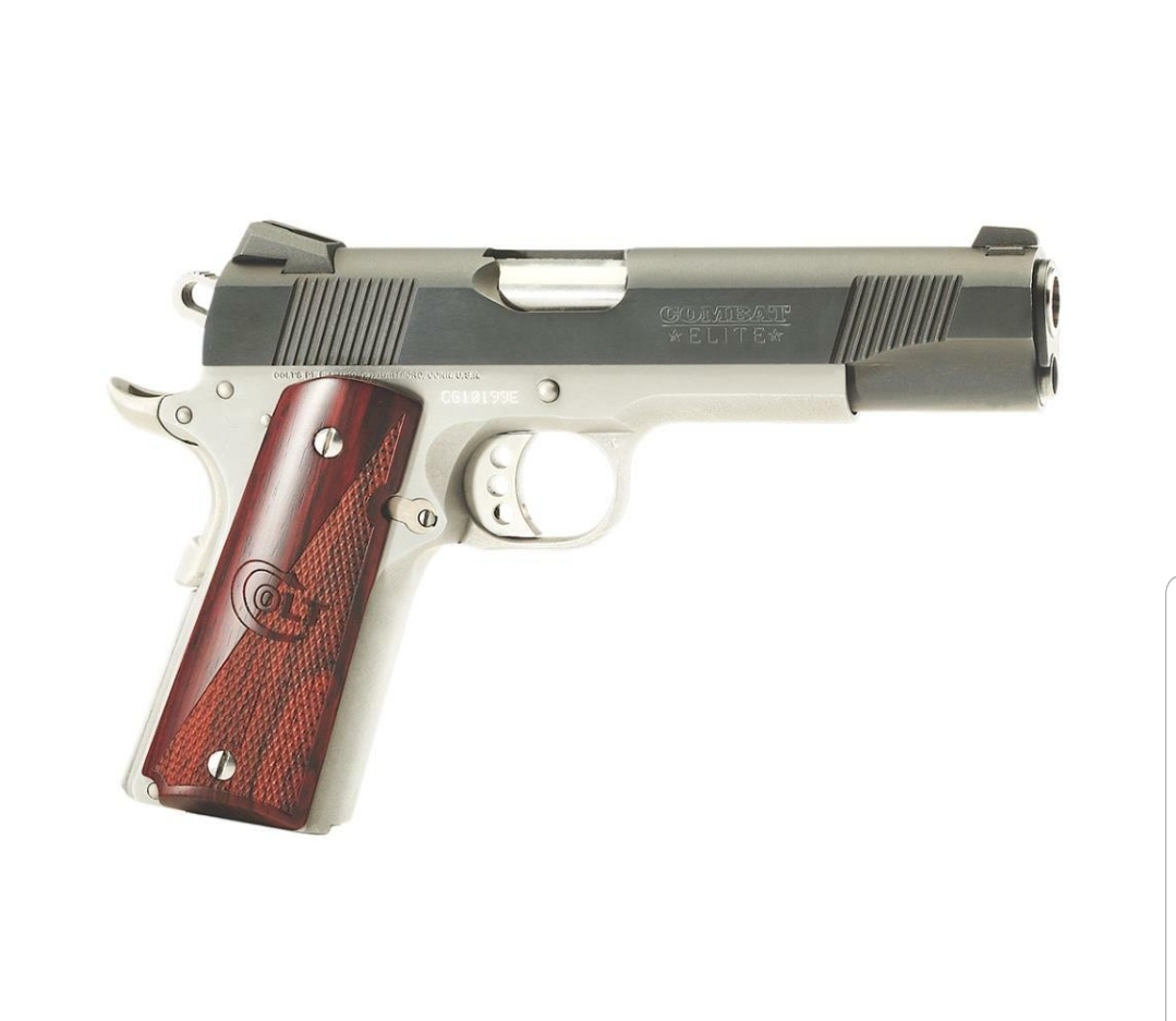 The Colt Combat Elite is a classic pistol built with features desired by the combat-style match shooter. This pistol features half checkered and half smooth rosewood grips embossed with the Colt logo, a Colt upswept beavertail grip safety with palm swell, a Colt single-side tactical safety lock, a National Match barrel, and Novak low mount carry sights with dots. The heart and soul of the Combat Elite pistol is still derived from its forged steel receiver, forged steel slide, forged stainless steel barrel, and forged steel slide stop. The Combat Elite is a great addition for any collector or avid shooter.