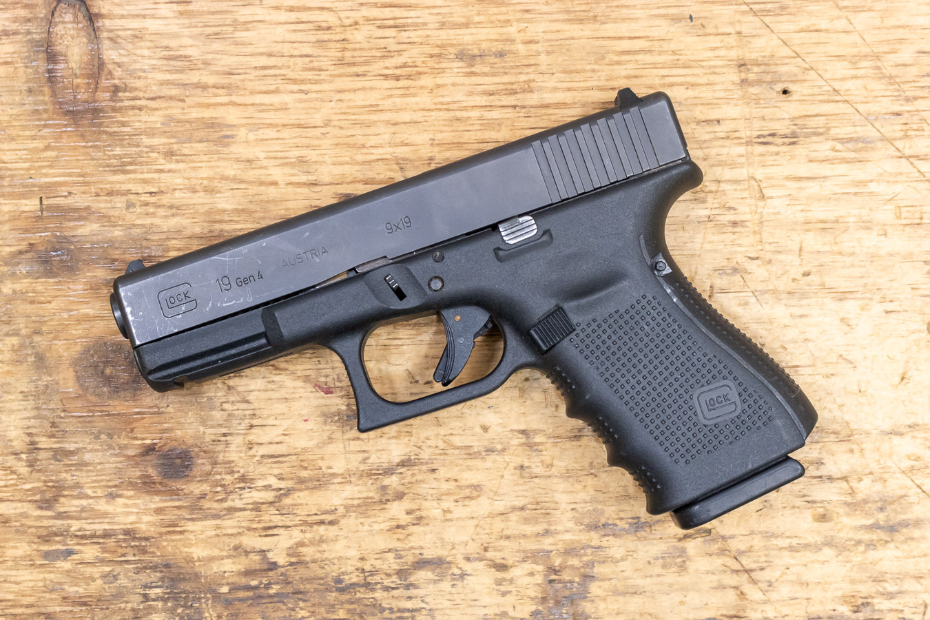 Reliability and simplicity have made GLOCK® G19 Semi-Auto Pistol one of the most widely used sidearms in law enforcement worldwide. The G19 is a mid-size pistol, shooting the 9x19mm pistol cartridge (9mm Parabellum), a standard military round that’s easy to find ammo for anywhere. The GLOCK 19 is a short-recoil operated, striker-fire semi-automatic pistol. The Safe-Action trigger system makes shooting in stressed situations infallible. The main frame of the GLOCK pistol is constructed of high-strength polymer that is resistant to shock, caustic liquids, and temperature extremes. The milled steel slide and the barrel are treated with matte black Tenifer finish for extreme resistance to wear and corrosion. The Tenifer treated steel and polymer frame make the pistol impervious to corrosion caused by perspiration and humidity when carried close to the body, or kept in a holster for extended periods of time. The slide cycles on 4 hardened steel guide rails within the frame. An integral accessory rail in front of the trigger guard allows for the attachment of aftermarket tactical flashlights or laser sights. The white-dot front sight and the white-bracket rear sight provide rapid acquisition in dim lighting situations. The rear sight is dovetailed into the slide and is drift adjustable. GLOCK pistols fieldstrip easily without the use of tools. The GLOCK G19 Semi-Auto Pistol is an ultra-reliable handgun that is easy to learn how to operate and maintain, making it an ideal choice for self-defense, whether it be for concealed carry, at home, or on duty. The model G19 comes with two standard 15-round magazines, or two 10-round magazines that comply with various city or state restrictions on magazine capacity.
