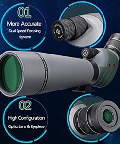- Dual focus system: coaxial 2-speed focusing wheels allow for smooth and accurate focusing. The fast focus wheel helps you lock the target quickly, the fine focus wheel zoom to the target and get more details.