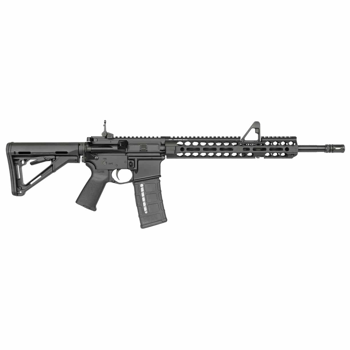 Both the 9.5 inch and 12.625 inch models are compatible with carbine length rifles with A2 style front sight gas blocks. Rifles with carbine gas systems include the Ruger AR556, M&P-15 Sport II, and many other M4-style AR-15 rifles. Carbine length rifles have a distance of around 7 inches from the front of the receiver to the back of the gas block.