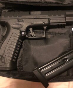 The Springfield Armory® XD-M® Elite 4.5″ packs all the advanced features of the Elite line into well-balanced and extremely capable package. Featuring the Match Enhanced Trigger Assembly (META™) — delivering the finest production polymer-framed pistol trigger pull available, ambidextrous slide stop, improved slide serrations and an increased magazine of 20+1 (working in concert with a removable “short” extended and flared magwell), the XD-M Elite 4.5″ offers you a handgun ready to serve. Includes a soft, zip-up case.