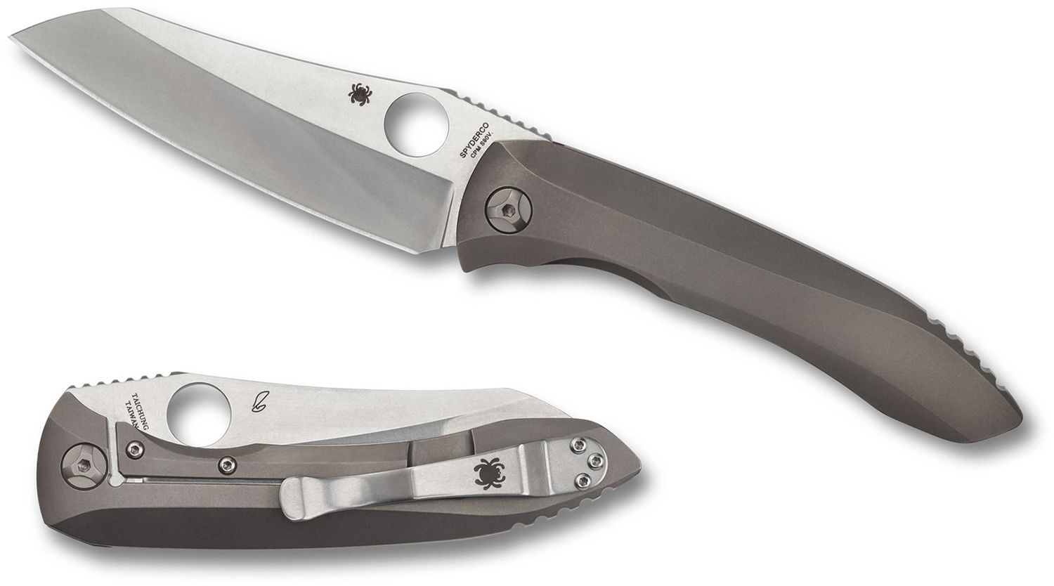Spyderco Rassenti Paysan Folding Knife 3.88″ S90V Stonewashed Plain Blade, Integral Titanium Handle – C238TIP