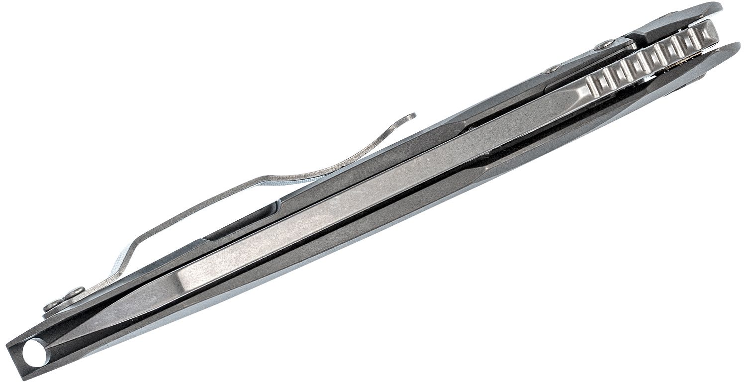 The Paysan is an exquisitely crafted folding knife based on the custom creation of renowned knifemaker Peter Rassenti. French for “peasant” or “farmer,” the Paysan (pronounced pie-zaan) is, paradoxically, an incredibly sophisticated design. Its uniquely shaped, saber-ground blade is crafted from 4 mm-thick (0.157-inch) CPM-S90V particle metallurgy stainless steel and features a fully accessible Trademark Round Hole for ambidextrous, one-handed opening. The blade pivots on ball-bearing washers for an ultra-smooth action and is housed in a one-piece handle machined from solid titaniumβto include its high-strength Reeve Integral Lock (R.I.L.) mechanism. A stainless steel interface in the lock yields a long service life and also functions as an overtravel stop. To keep the Paysan poised for instant access, it includes an hourglass pocket clip configured for right-side, tip-up carry.